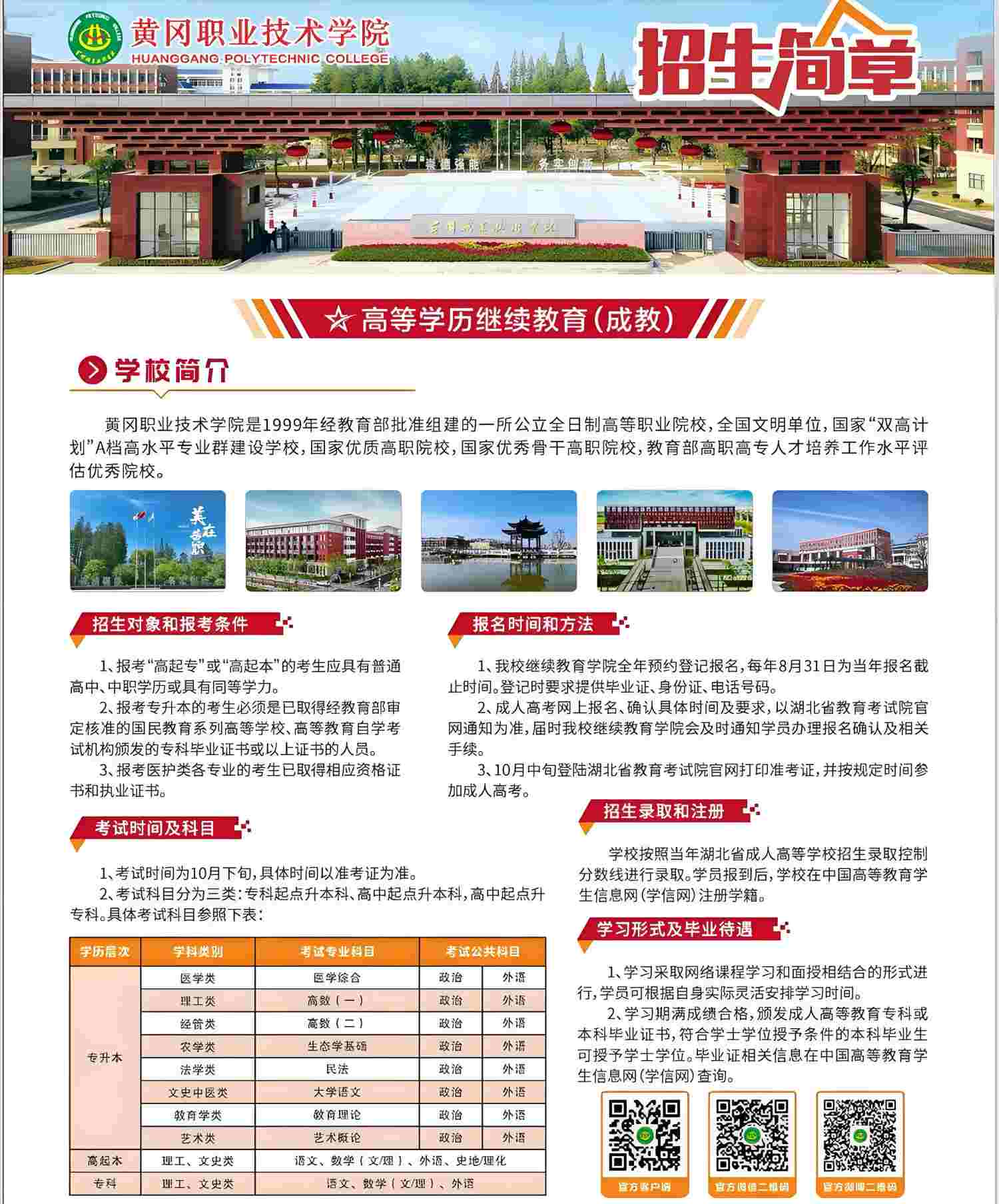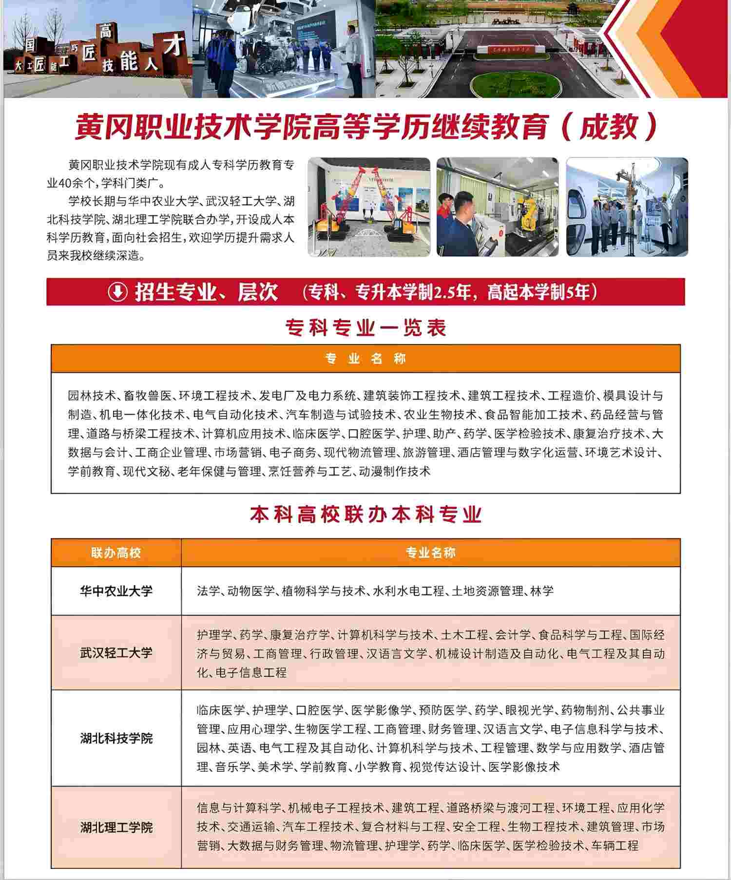 2025年黄冈职业技术学院继续教育学院成人教育招生简章
