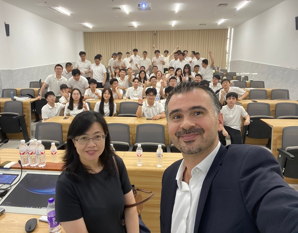 我院李凌院长致辞中谈及,我校与法国EFREI大学建立了超过二十年的校级合作关系,历史悠久,中法EFREI硕士项目作为法国高校第一个海外颁发学位的项目,本学期就有超过4位法国EFREI的教授前往武汉为学生授课。中方也在积极联系包括VIVO等公司在内的大型企业洽谈实习单位合作,为EFREI项目的毕业生提供更多更好的平台和就业机会。中法两校将全力支持合作办学项目的发展,为同学们提供优质的学习资源和服务保障。两校共同努力把项目打造成国内国际一流的标杆,借助该项目把中法两校的教学科研合作和人才培养水平提升到一个新的里程碑。